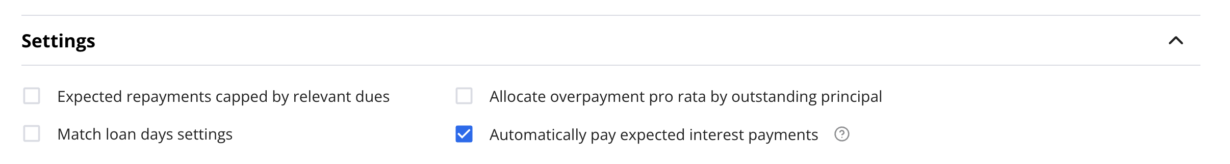 When this setting is enabled, Hypercore will automatically mark expected interest payments as paid if no actual payment is recorded on the scheduled date.